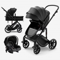 Carucioare 3 in 1 Negru contin: landou spatios, unitate sport, scoica auto 0 -13kg cu un design modern. Toate acestea vin montate separat pe cadru.